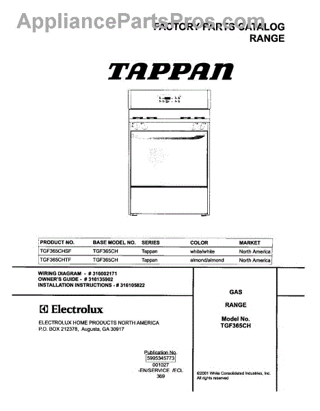 Parts for Tappan TGF365CHSF: 01 - Cover Parts