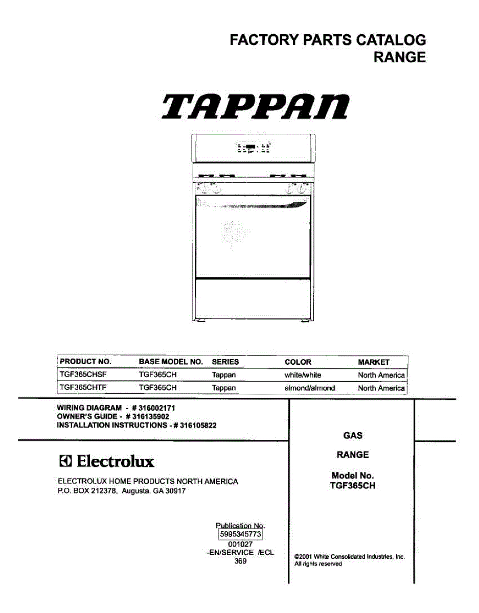Parts for Tappan TGF365CHTF: 01 - Cover Parts