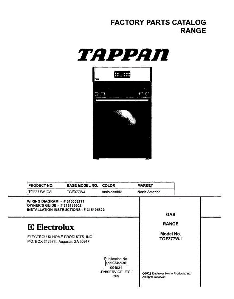Parts for Tappan TGF377WJCA: 01 - Cover Parts
