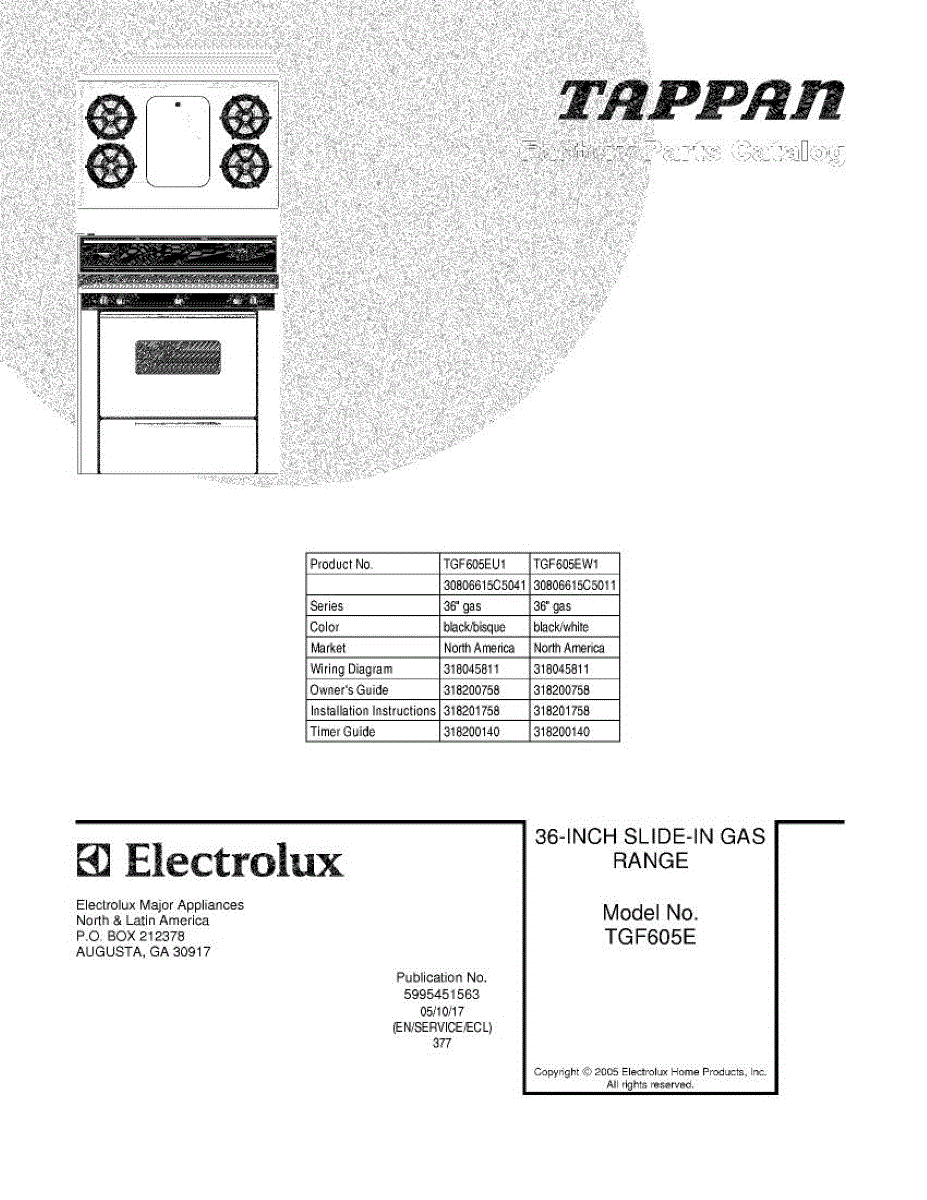 Parts for Tappan TGF605EW1: 01 - Cover Parts