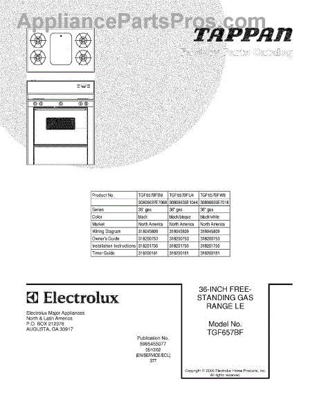 Parts for Tappan TGF657BFU4: 01 - Cover Parts