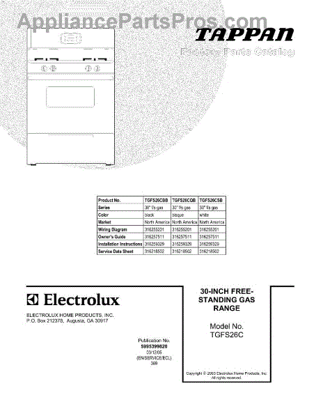 Parts for Tappan TGFS26CBB: 01 - Cover Parts