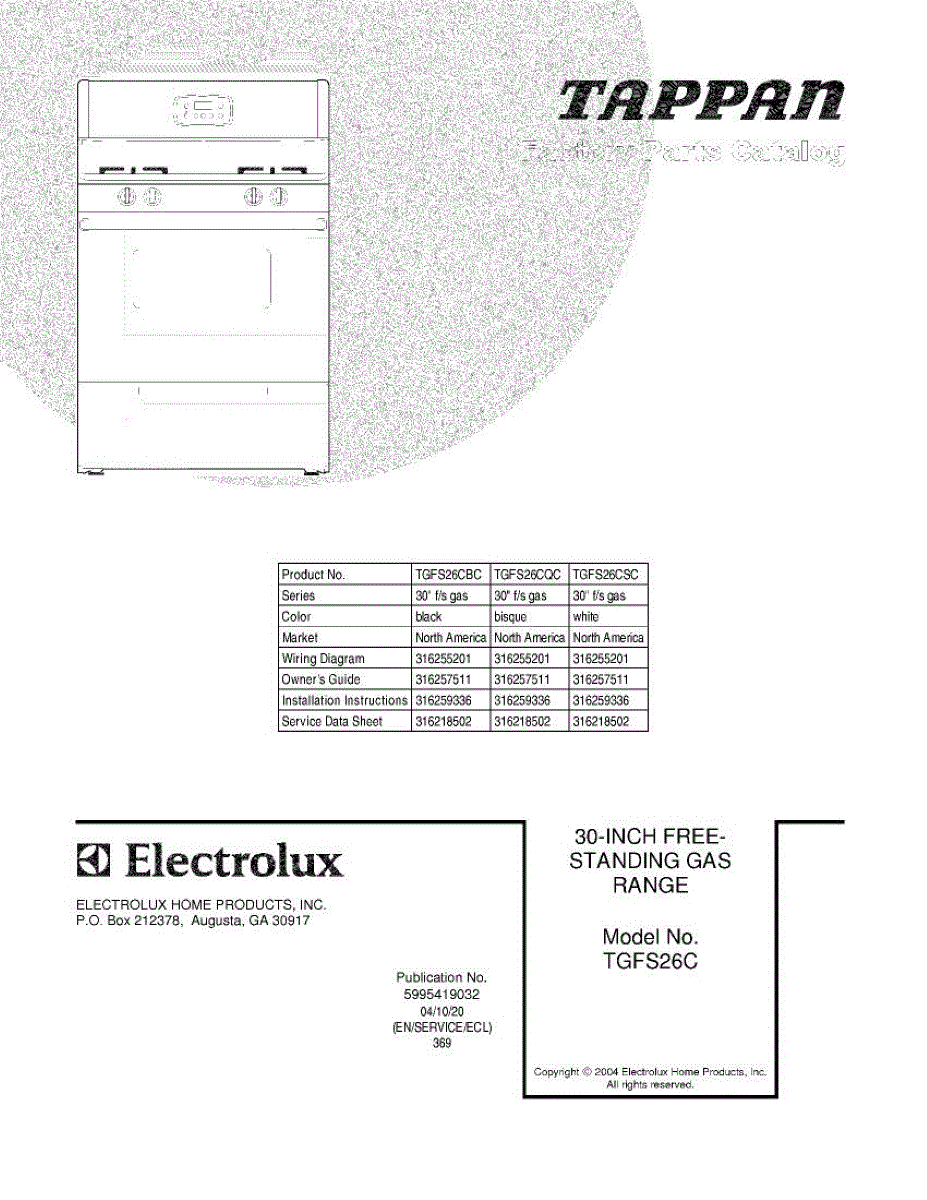 Parts for Tappan TGFS26CBC: 01 - Cover Parts
