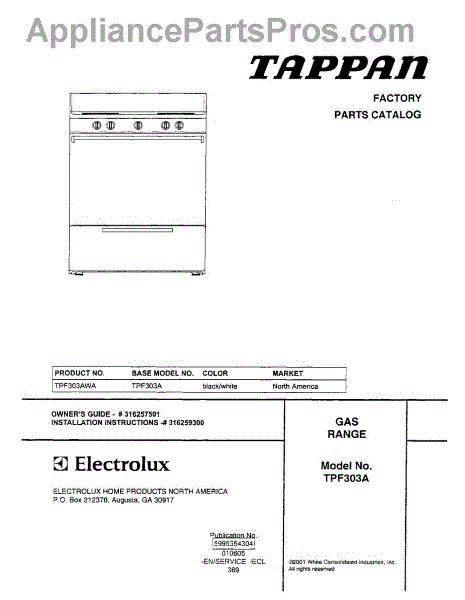 Parts for Tappan TPF303AWA: 01 - Cover Parts