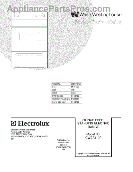 Parts for White Westinghouse CWEF310FSA: 01 - Cover Parts