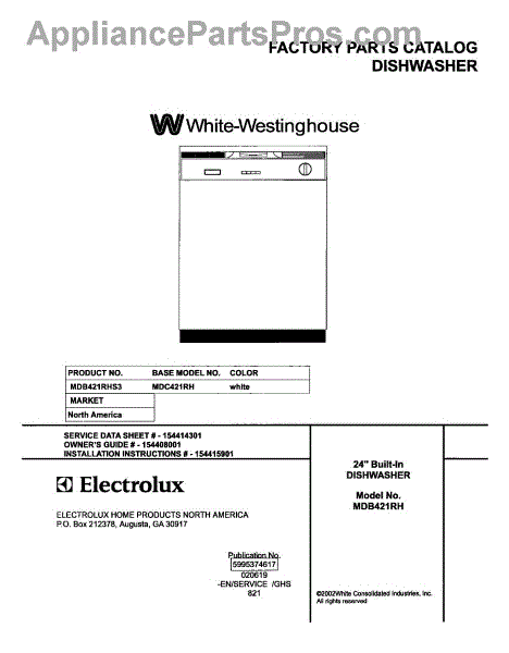 Parts for White Westinghouse MDB421RHS3: 01 - Cover Parts