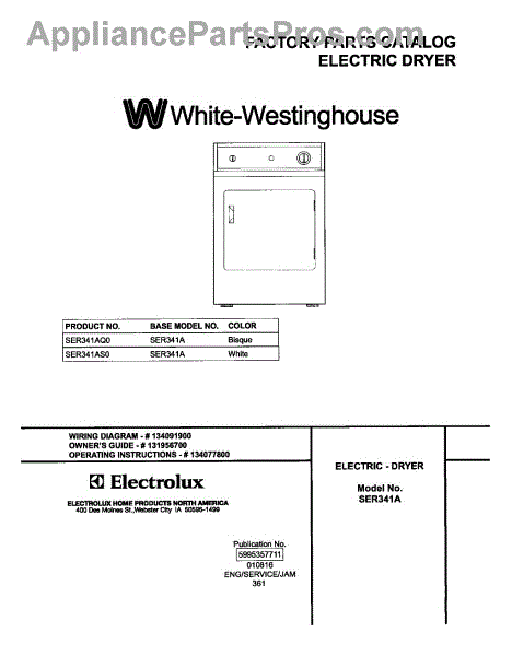 Parts for White Westinghouse SER341AS0: 01 - Cover Parts