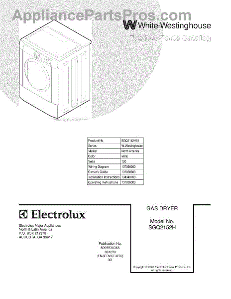 Parts for White Westinghouse SGQ2152HS1: 01 - Cover Parts