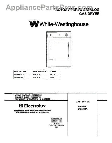 White Westinghouse Dryer Parts