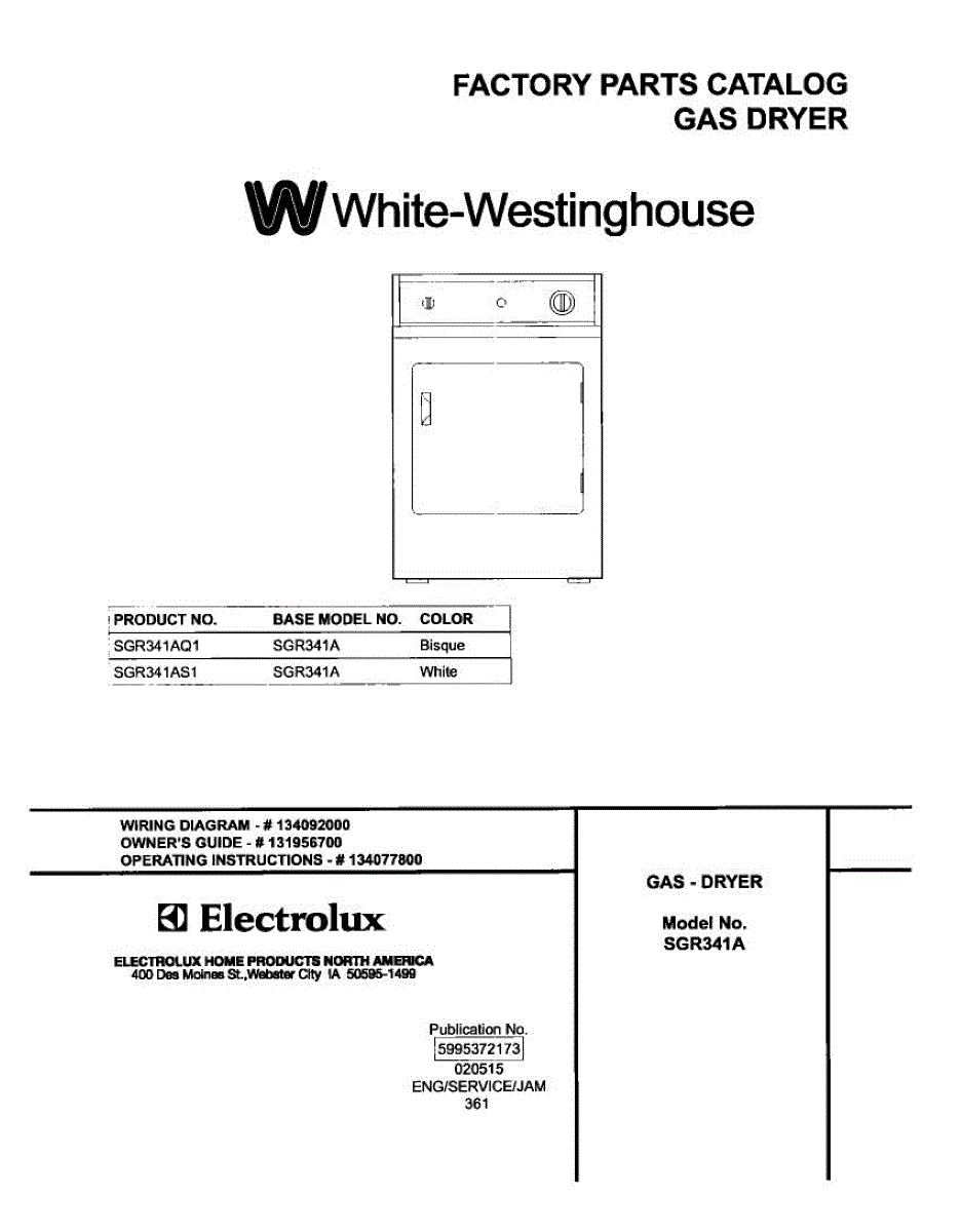 Parts for White Westinghouse SGR341AS1: 01 - Cover Parts