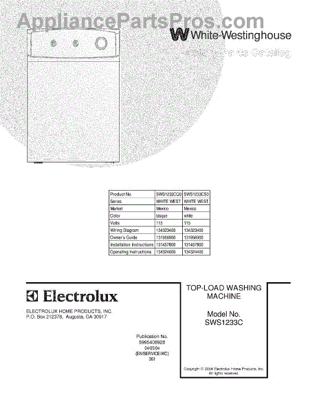 Parts for White Westinghouse SWS1233CQ0: 01 - Cover Parts