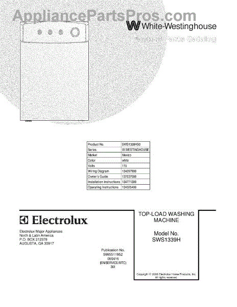 Parts for White Westinghouse SWS1339HS0: 01 - Cover Parts