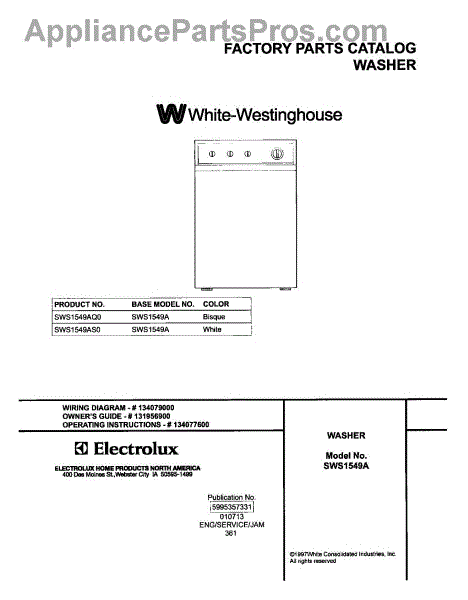 Parts for White Westinghouse SWS1549AQ0: 01 - Cover Parts