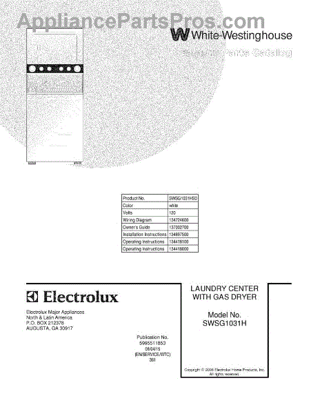 Parts for White Westinghouse SWSG1031HS0: 01 - Cover Parts