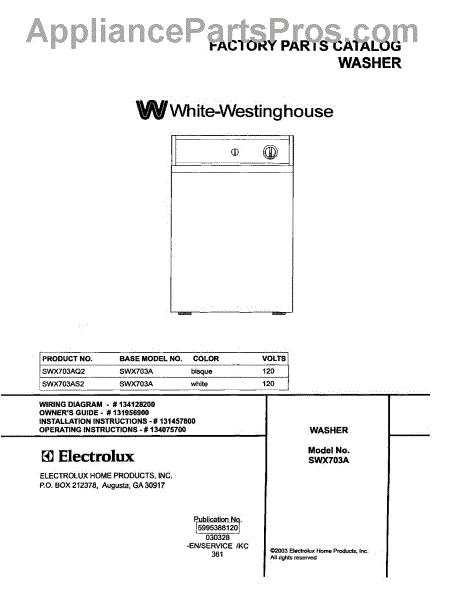 Parts for White Westinghouse SWX703AS2: 01 - Cover Parts