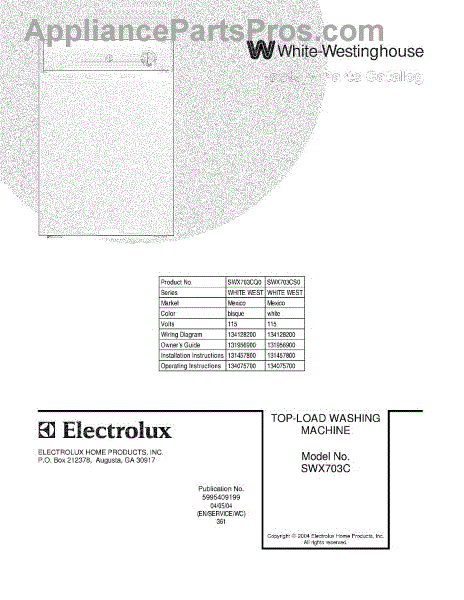 Parts for White Westinghouse SWX703CQ0: 01 - Cover Parts