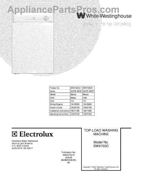 Parts for White Westinghouse SWX703CQ1: 01 - Cover Parts