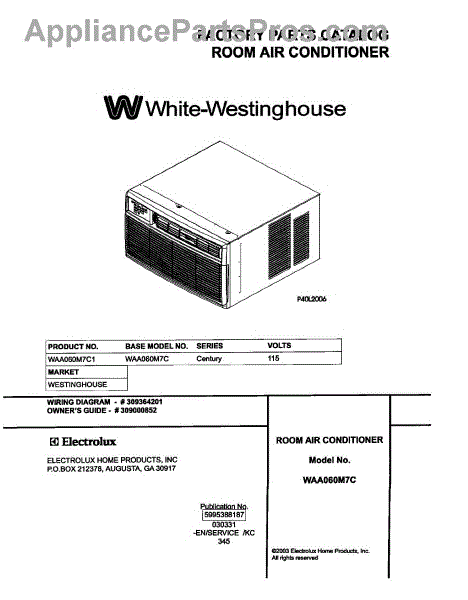 White Westinghouse Air Conditioner Parts