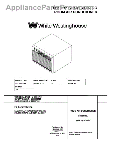 Parts for White Westinghouse WAC052K7A6: 01 - Cover Parts