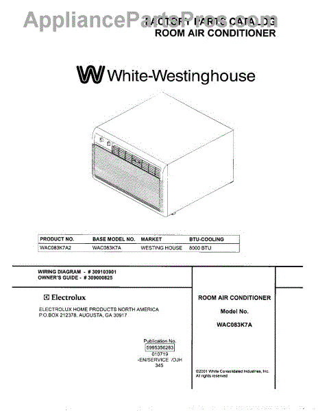 Parts for White Westinghouse WAC083K7A2: 01 - Cover Parts