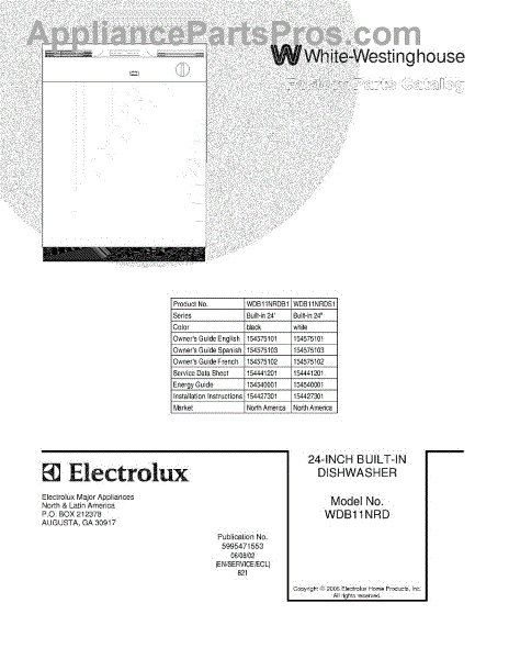Parts for White Westinghouse WDB11NRDB1: 01 - Cover Parts