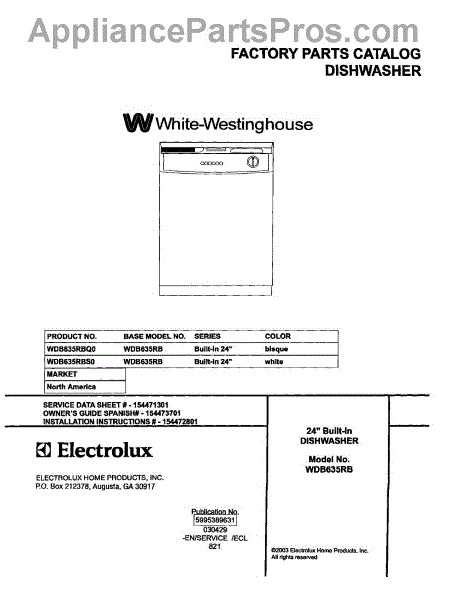 Parts for White Westinghouse WDB635RBQ0: 01 - Cover Parts