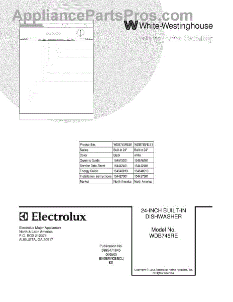 Parts for White Westinghouse WDB745REB1: 01 - Cover Parts