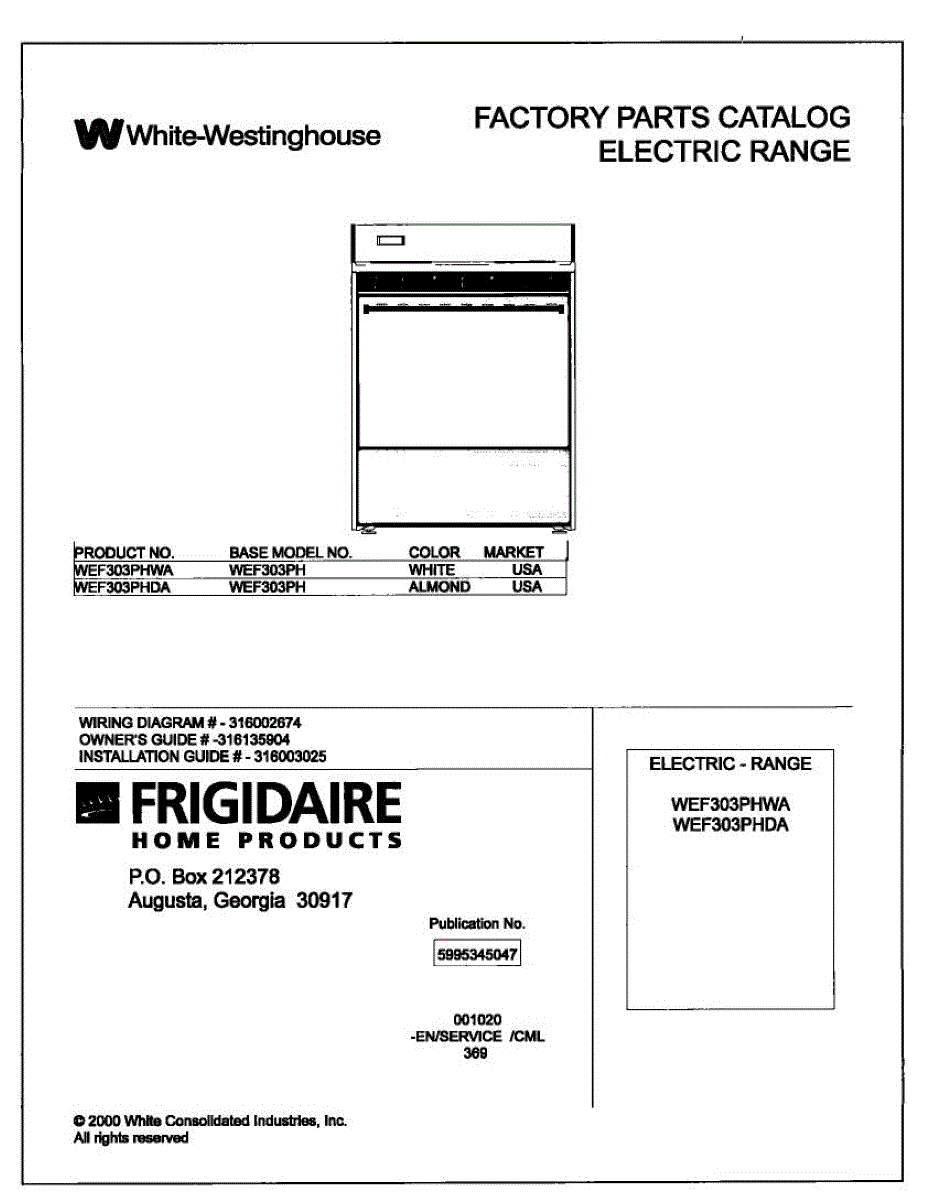 Parts for White Westinghouse WEF303PHDA: 01 - Cover Parts