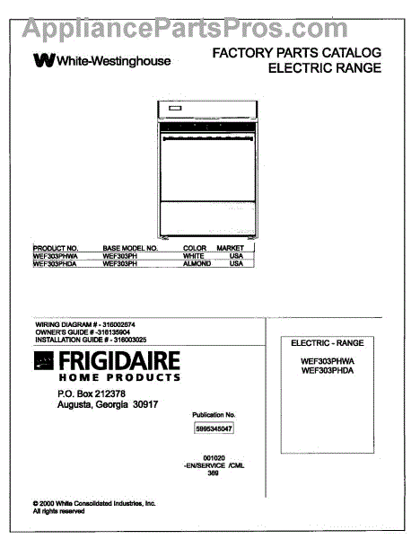 Parts for White Westinghouse WEF303PHWA: 01 - Cover Parts