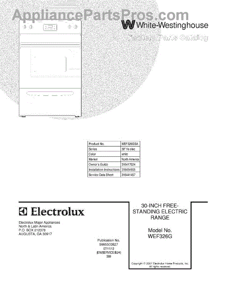 Parts for White Westinghouse WEF326GSA: 01 - Cover Parts