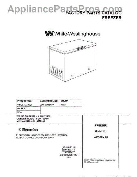 Parts for White Westinghouse WFC07M3HW1: 01 - Cover Parts