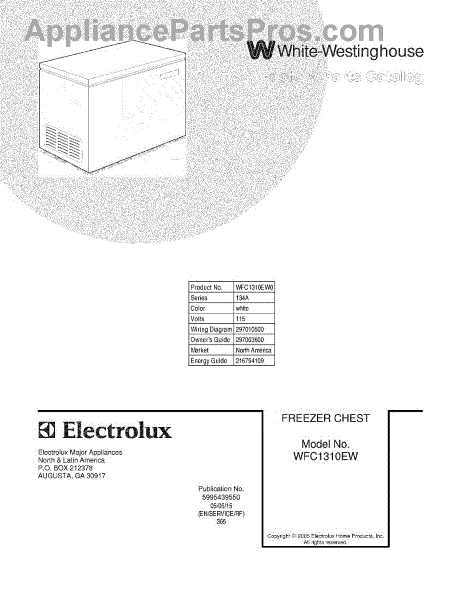 Parts for White Westinghouse WFC1310EW0: 01 - Cover Parts