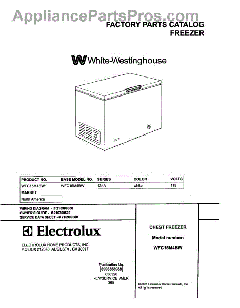 White Westinghouse Freezer Parts