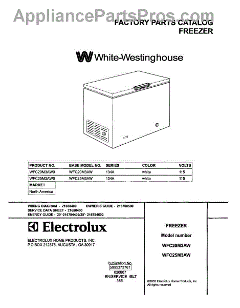 Parts for White Westinghouse WFC25M3AW0: 01 - Cover Parts