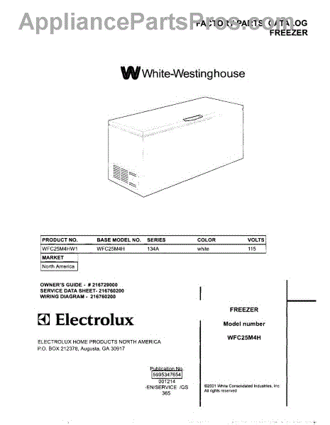 Parts for White Westinghouse WFC25M4HW1: 01 - Cover Parts