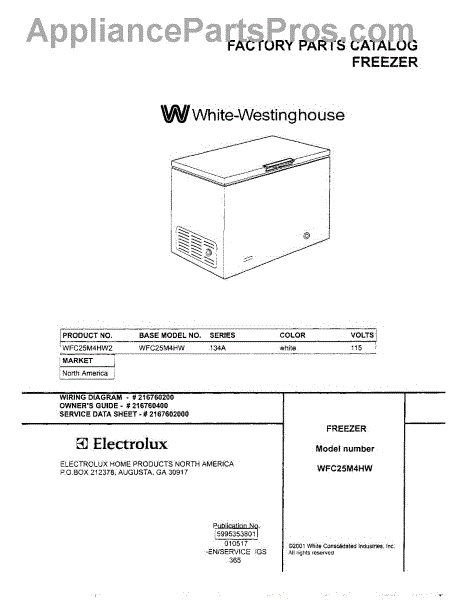 Parts for White Westinghouse WFC25M4HW2: 01 - Cover Parts