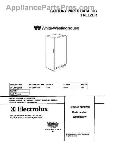 White Westinghouse Freezer Parts