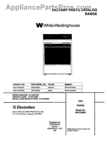 Parts for White Westinghouse WGF354BJWA: 01 - Cover Parts