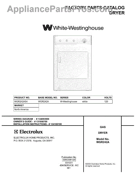Parts for White Westinghouse WGR242AS4: 01 - Cover Parts
