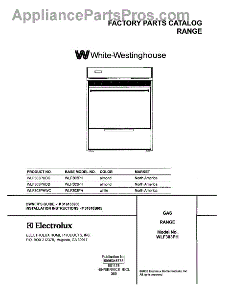Parts for White Westinghouse WLF303PHWC: 01 - Cover Parts