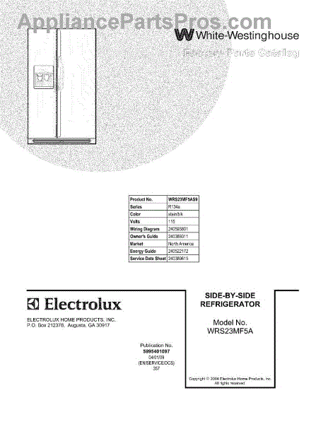 Parts for White Westinghouse WRS23MF5AS9: 01 - Cover Parts
