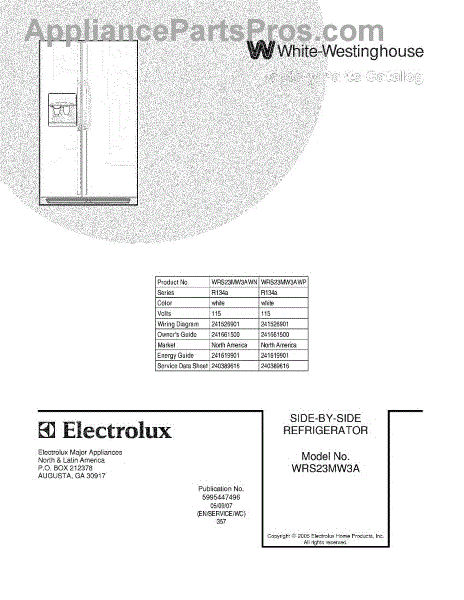 Parts for White Westinghouse WRS23MW3AWP: 01 - Cover Parts