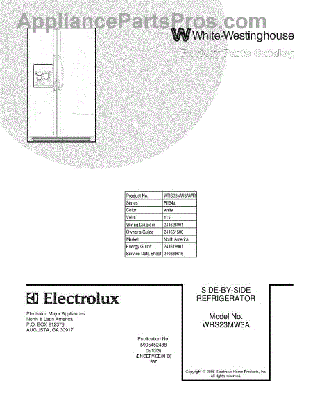 Parts for White Westinghouse WRS23MW3AWR: 01 - Cover Parts
