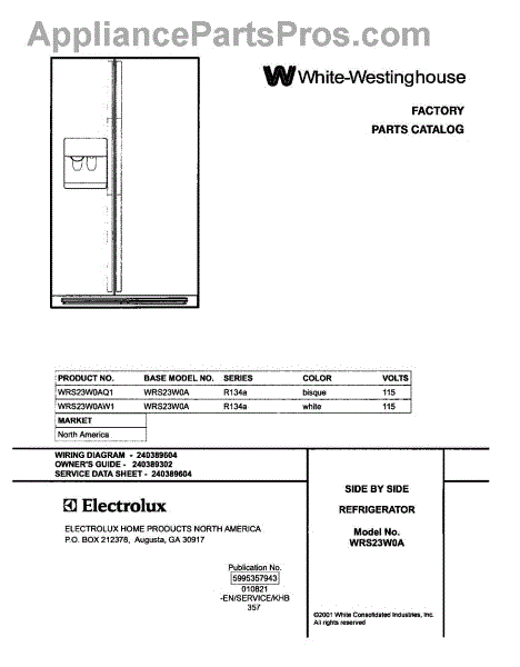 Parts for White Westinghouse WRS23W0AQ1: 01 - Cover Parts