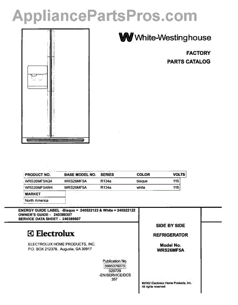 Parts for White Westinghouse WRS26MF5AQ4: 01 - Cover Parts