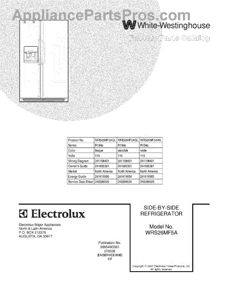 Parts for White Westinghouse WRS26MF5AQL: 01 - Cover Parts
