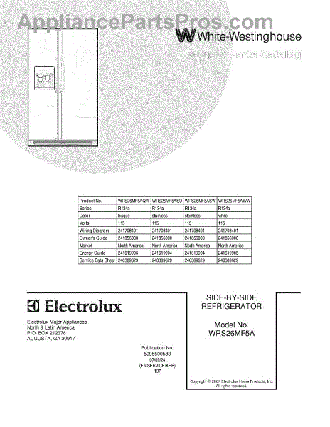 Parts for White Westinghouse WRS26MF5AQW: 01 - Cover Parts