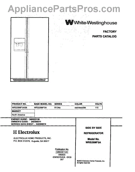 Parts for White Westinghouse WRS26MF5AS6: 01 - Cover Parts
