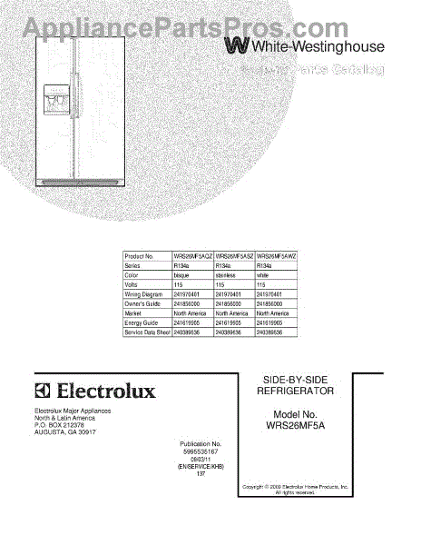 Parts for White Westinghouse WRS26MF5ASZ: 01 - Cover Parts
