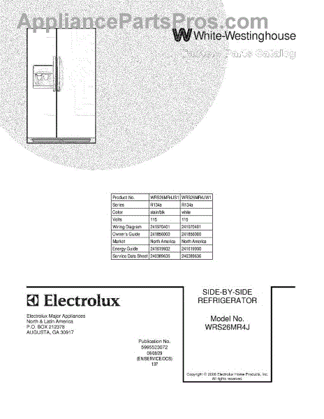 Parts for White Westinghouse WRS26MR4JW1: 01 - Cover Parts